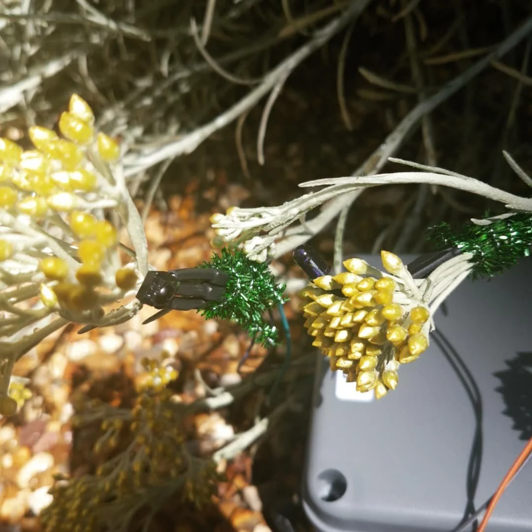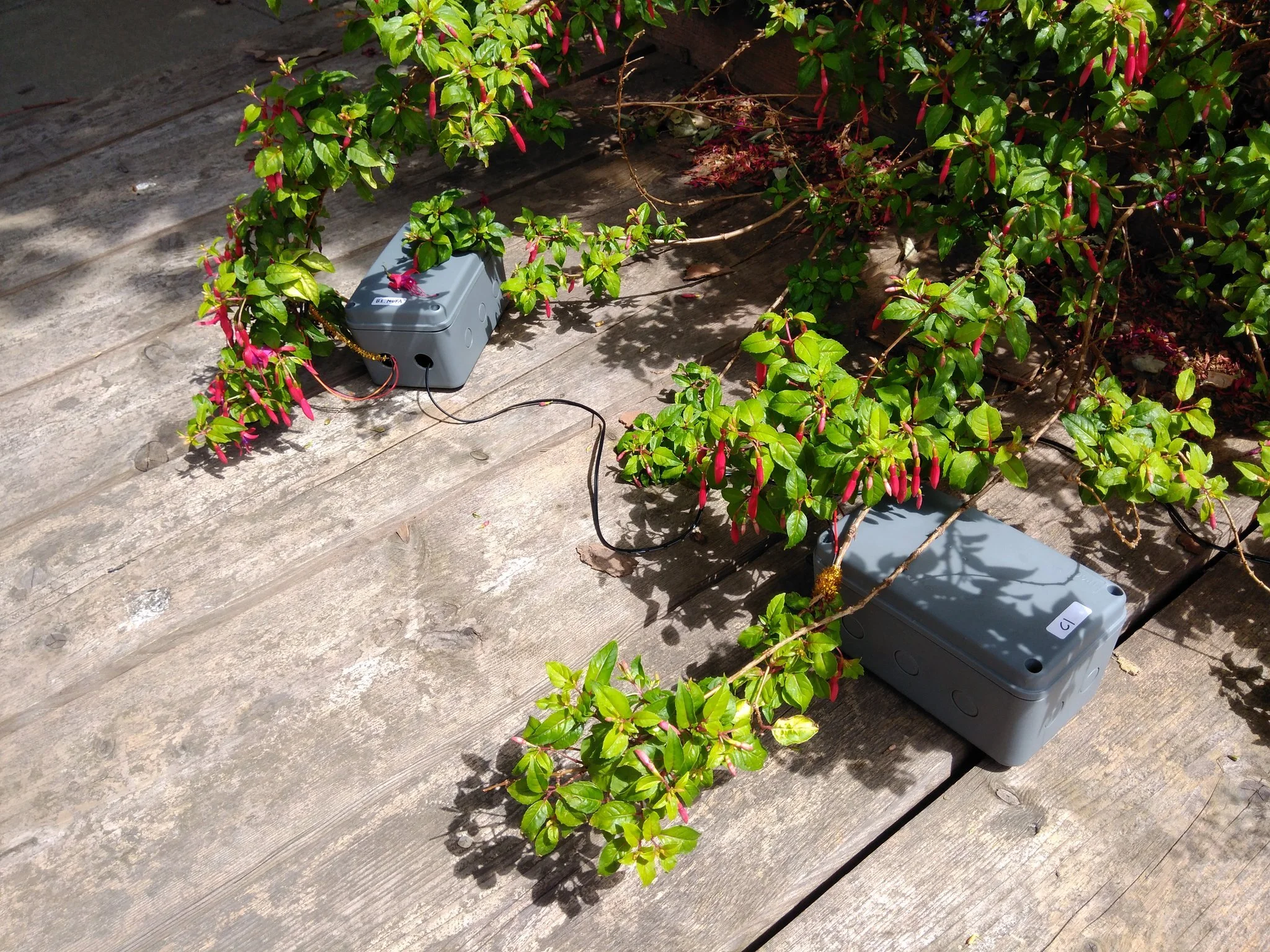 We then went out into the garden to attach the devices to the plants, using pipe-cleaners. Once the installation was complete and weatherproofed – a necessity due to classic British summer weather – the files were sent from plant to plant. When we saw the transmission data on screens, we realised that some of our initial assumptions about how the botanical network might react were incomplete.